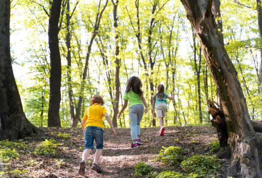 Der Wald bietet vielfältige Bewegungsmöglichkeiten – z. B. Springen über Baumstämme, Balancieren, Klettern – und fördert damit Grob- und Feinmotorik auf natürliche Weise